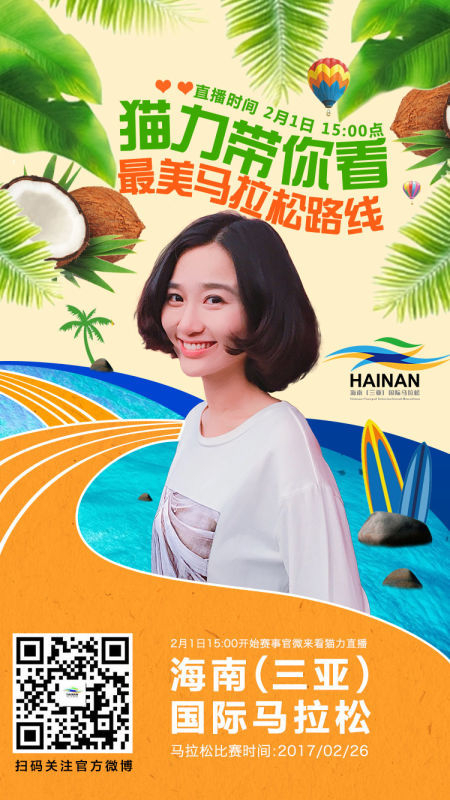 都说好看的人喜欢一起玩,果不其然!就在2月1日,最美旅行家猫力(微博)将在海南三亚邂逅最美马拉松赛道,届时还会有一场“加倍好看”的网络直播秀登录一直播平台。既然好看的人都聚到了一块,同样好看的你还不赶紧上车!