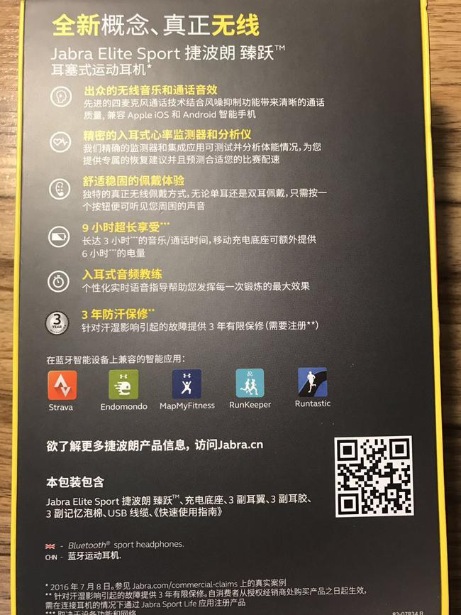 内包装的左侧是捷波朗配套的Jabra sport Life 应用程序,安卓和苹果手机均可以下载使用,该软件的功能要比市场上主流的一些跑步软件更为全面,这个我们下文会介绍。