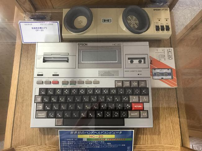 下面这个是“HC-20”,是爱普生1982年生产的手持计算机,是第一台笔记本型计算机,有键盘、液晶显示器、磁存储器、打印机和数据通信功能。