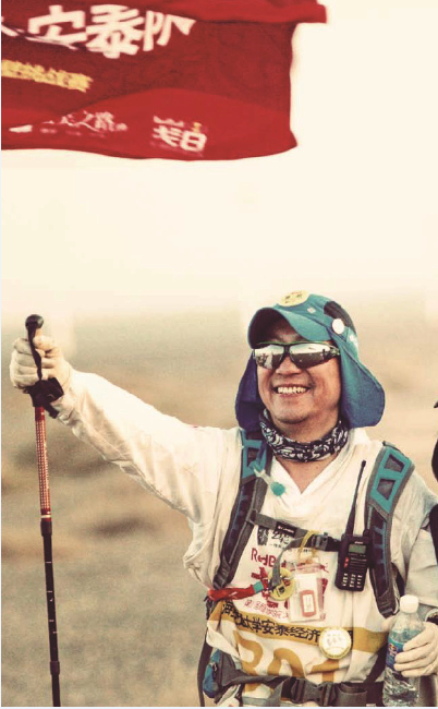 跑步对他来说是一种独特的生命体验。给他印象最深刻的一次是2015年的新疆巴楚双人双马,比赛之艰苦卓绝超出想象,但他说,“越是艰苦的条件,我们对幸福的理解会更透彻,不管事业成功与否,职位高低,如果能去户外,在大自然里感知,对自己家人、朋友、事业的态度都会改变。”