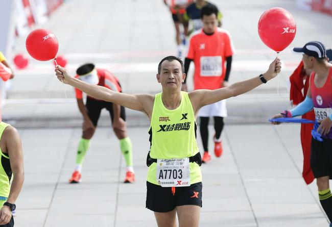 汤安华,今年52岁,被武汉当地跑者亲切称为“汤老师”。大学期间囊括了校运会1500米、5000米、10000米及秋冬季越野长跑赛的冠军,并代表学校参加全国大运会。走上工作岗位后也一直在健康跑的路上,在2014年加入了特步“特跑族”。随着中国马拉松运动的迅猛发展,2015年参加人生首马北马后,不足两年内先后参加了长沙、厦门、重庆、武汉、广州等十五场全马和六场半马赛事,全马PB325、半马PB128,达到国家三级运动员标准。汤老师经常和大家分享跑马的经验,当选2016武汉半程马拉松赛特步“真跑者大伽”。他的愿望是在六十岁前完成百场全马,跑至八十岁,继续影响和带动大众运动起来,为普及全民健身作出应有的贡献!