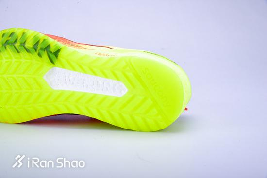 中间不会与地面摩擦的地方空出来标上EVERUN 的字样,再加上大底内部的黑色EVERUN字样以及中底外侧的EVERUN,也许鞋子设计者最开始想直接把鞋子名叫 Saucony Everun ISO。