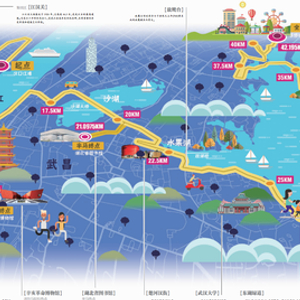 跑过长江大桥,去年汉马的经典地标——黄鹤楼、辛亥革命博物馆、武昌江滩、沙湖、汉街等都将再次让跑友体验到武汉深厚的历史人文和自然风光之美。随后,去年底开通的东湖绿道,将进入汉马跑友们的视野。本届汉马赛道将完整途经湖山道及湖中道两个主题绿道,这里有显山露水的开敞空间、有屏障成林的隐藏村落、有四季分明的景色背景、有花灌草乔的层次搭配,形成一幅山水林路亭的天然画卷,让跑友深切体会到武汉绝美湖光山色。