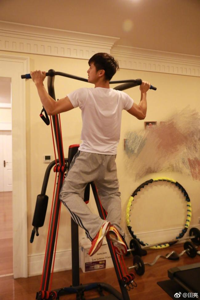 北京时间4月19日晚,田亮在个人微博中晒出一组跑步健身的照片,并表示:想起来就练几下,反正怎么都不会有人说你瘦,再说了,设备生锈也不好啊!