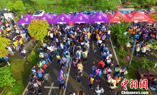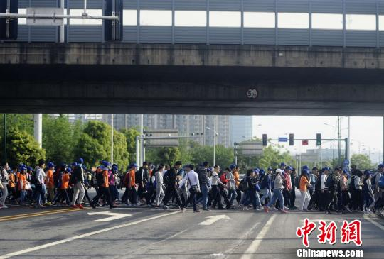 毅行者正在过马路。 杨华峰 摄中可华中公司为毅行者免费托运行李。 杨华峰 摄