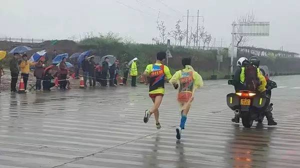 起先雨下得比较大,到28公里多他们折返后已经变小。王涛全程都穿着雨披,而黑人精英 “应该是前面穿,后面就扔了”。