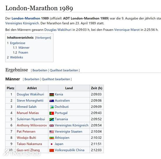 一年后,他在伦敦马拉松跑出个人最好成绩2:12:03。以下是笔者搜索到的德文维基百科页面(竟然没有英文版):