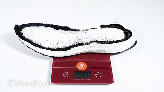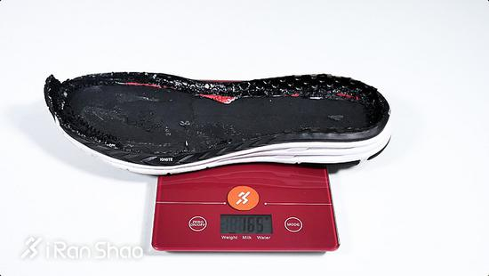 这样看来,BOOST材料有184克的重量也不无道理,毕竟在厚度更厚的情况下它所使用的材料更多。而Speed IGNITE NETFIT的表现则不太理想,中底厚度在五双爆米花跑鞋中是最薄的,但重量却是仅次于BOOST的,当然这与它所使用的双密度IGNITE中底有很大关系。