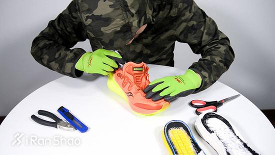 拆鞋的过程并不简单,鞋面上的硬质支撑材料、鞋面与中底连接除了车缝线之外还有胶水,中底之上还有强力粘贴的单层/双层的中底网布。就拆解难度而言,adidas UltraBOOST 3.0当属最难,其次是PUMA Speed IGNITE NETFIT,之后分别是Salomon S-Lab Sonic 2、Saucony Freedom ISO和Altra Escalante。