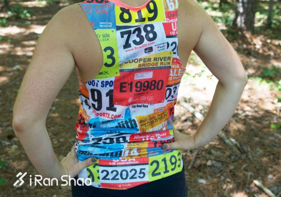 更有甚者将自己的号码布进行扫描,用PS做出了独一无二的图案,最后印刷在面料上,手工裁剪成了适合自己的跑步背心!