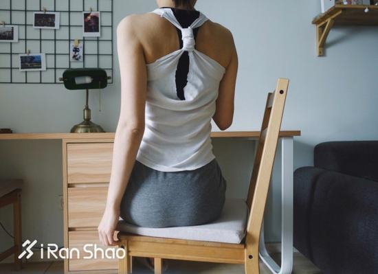 衣服太大的话,还可以将袖子剪掉改造成背心。背部也是一个可以做文章的地方,譬如交错盘个结,或者镂空一部分,手法简单,但上身效果就完全不一样了。