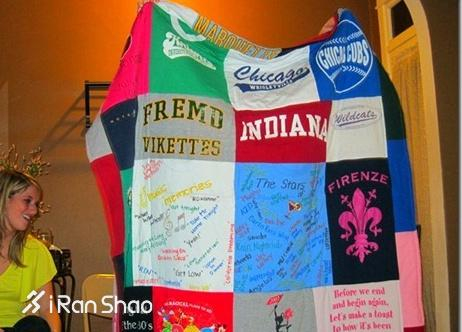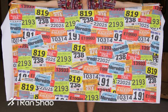将衣服经过裁剪再拼接缝合,就是一条百家毯。速干面料的T恤可以用作吸汗的毛巾,薄绒的卫衣制成薄毯子,下次出门比赛的时候带上,绝对吸人眼球。