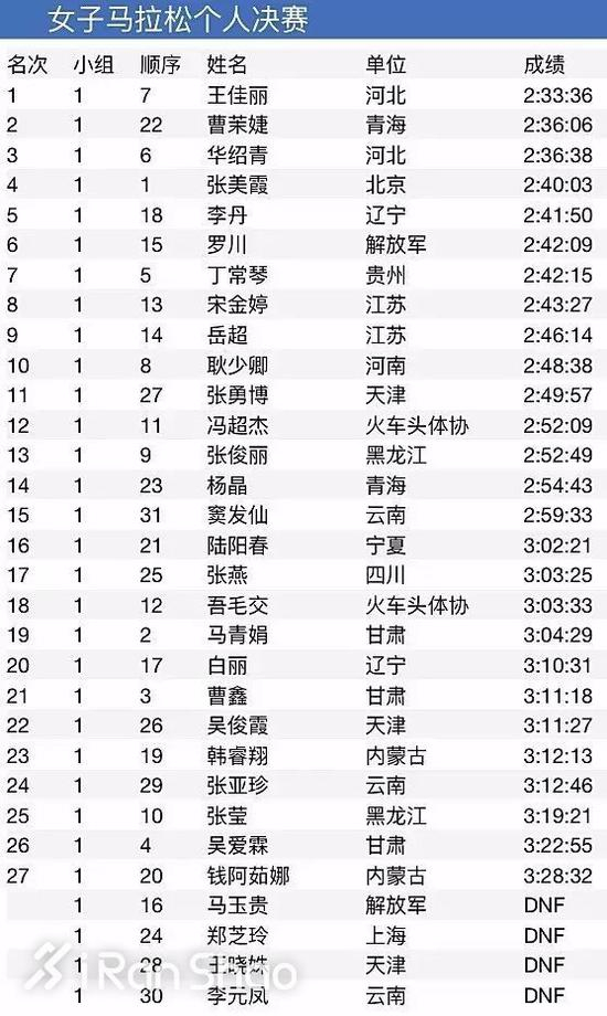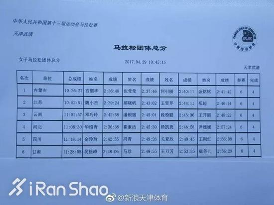 另两名队员成绩也不理想:丁常琴2:33:04,第16名;王雪芹2:41:42,第28名。