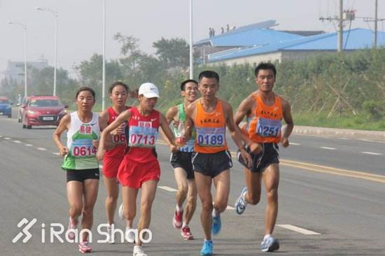 在人海中狼奔豕突了将近三公里,她才追上甘肃队的张锦霞(PB 2:29:48,2014重马)等A区出发的国内女子专业选手。