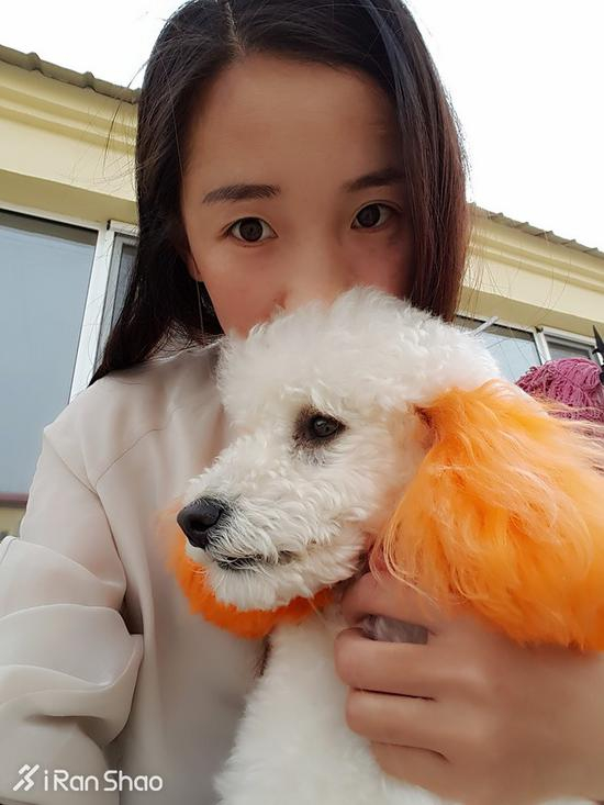 “平时教它各种本领,握手、趴下什么的。它基本都能听懂。它很粘人,它不能去的地方我坚决不去,所以很少出门。”