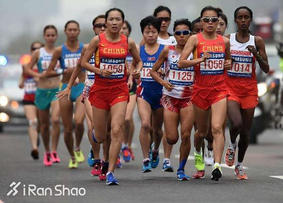 而他的2015年北京世锦赛国家队队友、内蒙古队著名女将何引丽,此时却被淹没在8000名全程选手中最靠后的E区,只能随着人潮缓缓向前挪动。(下图为何引丽在厦门马拉松)