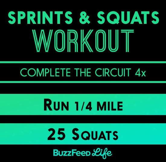连跑1英里(约1.61km)再做100个深蹲听来好虐!但如果每跑1/4英里(约400m)做25个深蹲,这样重复4次,同样的训练量既有趣还能降低受伤风险。