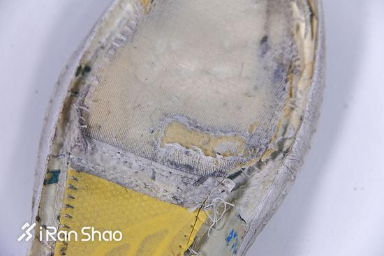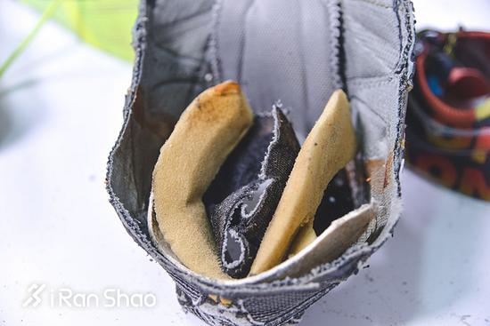 不过拆开鞋面之后我们发现内部的状态远好于外部,整个内层鞋面仅仅是脚趾区域出现了较为严重的磨损,其他地方反而保存了较好的完整性。