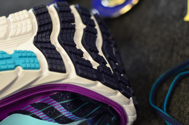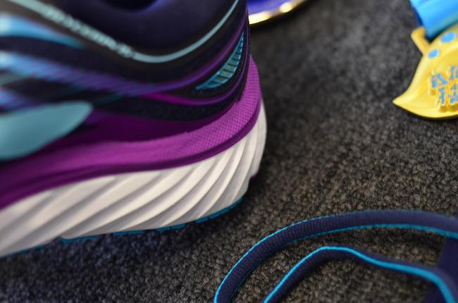 结论:Brooks前掌,包括中底、大底材料都采用非常弹性材料。另外,大底的弯形凹槽,为跑鞋提供了更多的灵活性,让跑者能最大程度踩蹬发力,奔跑更轻松。