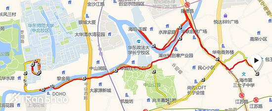 在河边地带,米动青春版有一段GPS轨迹明显受到建筑物的影响,而出现较为明显的漂移。相比而言,Spartan Sport的GPS轨迹要稳定许多。