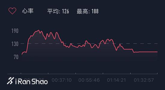 第二次测试,米动青春版所记录的最大心率为188,平均心率为126;Spartan Sport记录的最大心率为194,平均心率为148。