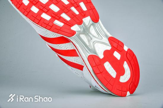 adios 3的鞋底并不是超轻竞速设计,23mm的后掌boost也会给跑者更多的保护(特别是马拉松后半程)。adidas adizero adios 3的定位可以扩展到330以内的全马水平,如果比330慢的话,在全马后半程脚底板也会有些吃力。
