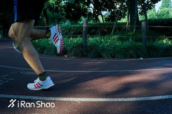 adios 3鞋楦偏窄,但不需要选大半码,按照日常穿着的码数来选就可以。在跑动中,adios 3带给跑者的鞋脚一体感非常明显,后跟贴合脚后跟。