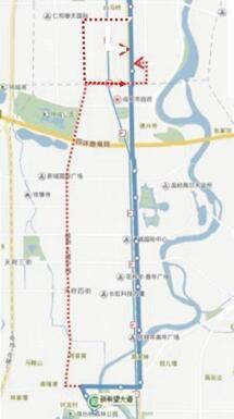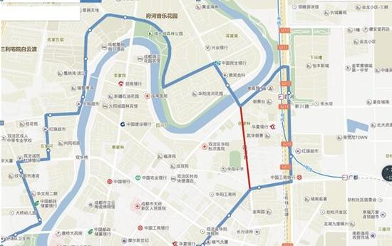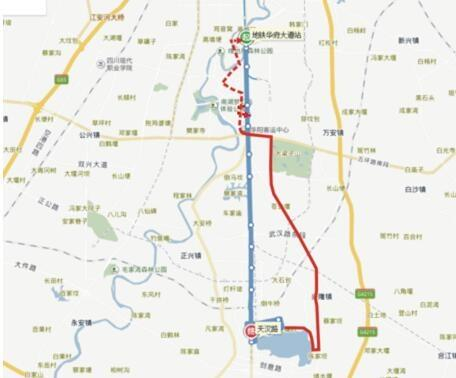 公济桥路西站至天华路,行驶路线及站点不变,右转至世纪城路,右转至世纪城南路,左转至中和大道后回原线行驶。