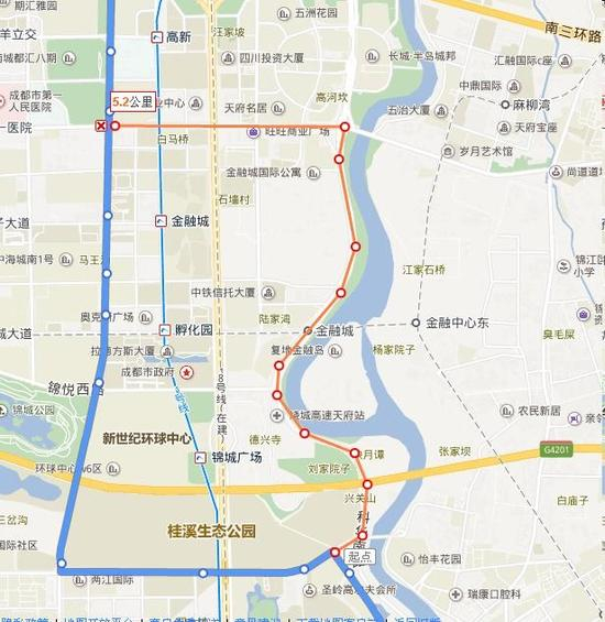 桂溪公交站至交子北一路行驶路线及站点不变。直行经交子南一路,左转至锦城大道后,回原线行驶。
