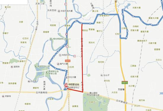 华阳客运站行驶至益州大道天府五街站站点不变,沿益州大道直行至天府一街,右转至地铁世纪城站。返程不变。
