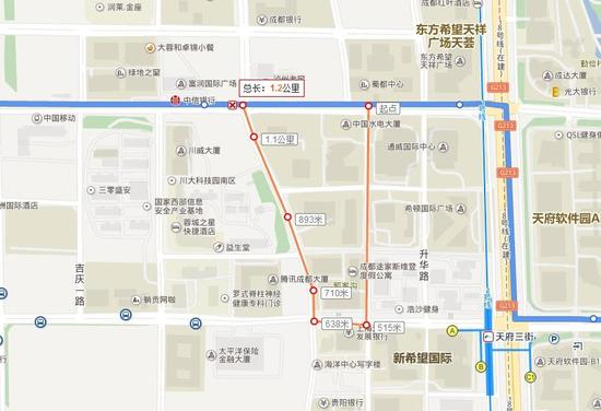 171B原线→天府四街剑南大道口直行→天府三街剑南大道口调头→171A原线行驶→益州大道天府一街口左转→益州大道中段→锦悦西路→环球中心站