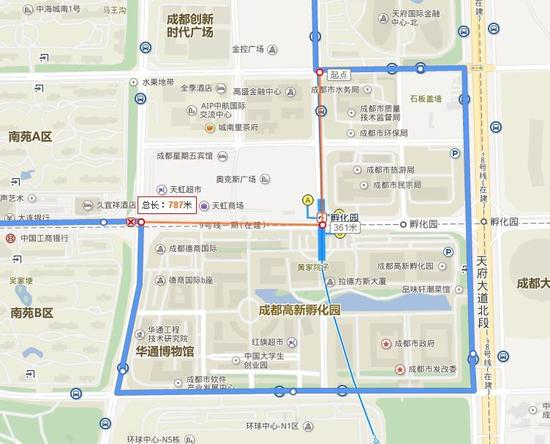 火车南站综合交通枢纽站至地铁世纪城站,行驶路线及站点不变,经天府大道中段,右转至天府二街,右转至益州大道中段,直行至益州大道北段后回原线行驶。