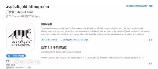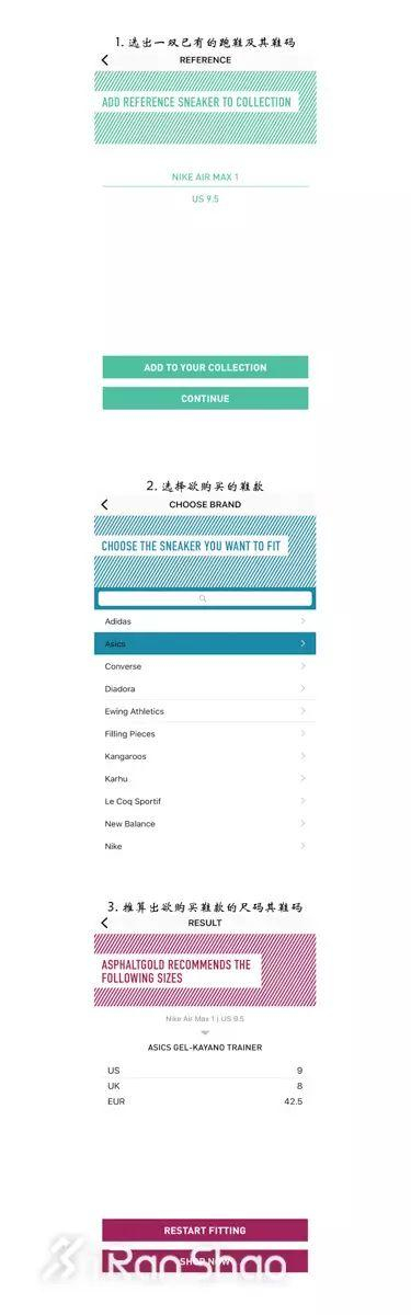 德国运动鞋店asphaltgold推出了一款名为fittingroom的手机APP,这款手机APP只要选择你现在穿着的鞋款以及尺码,即可转换到你想要购买的鞋款尺码作为参考。