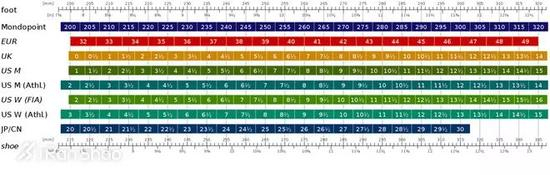 但是每个运动品牌都有自己的尺码标准,不一定完全按照这个标准。亚洲人的脚一般比欧美人要肥,脚背宽或者高的跑友可以适当考虑买加宽甚至特宽。
