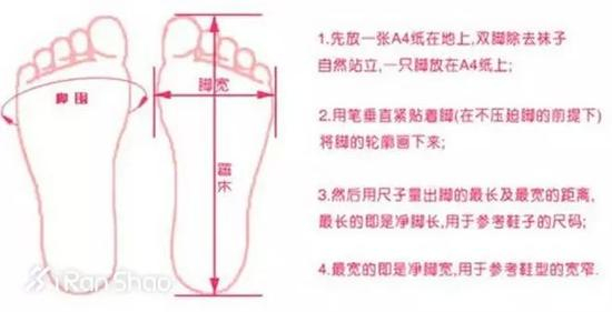 3。 并不是每个人的脚长和脚宽都能和运动鞋尺码表中完全吻合对应,在这种情况下,如果跑友测量得出的数据在两个数据之间,建议选购大一点的尺码,谨防夹脚。
