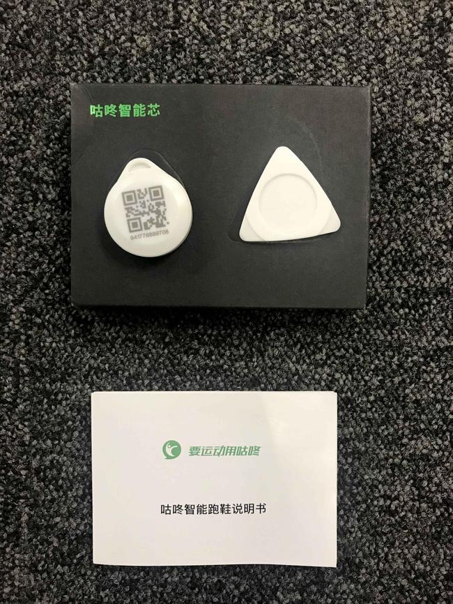 这款健步鞋的最大亮点体现在智能二字上,鞋子的包装里有一个小黑盒,里面装有健步鞋的智能芯片和使用说明。