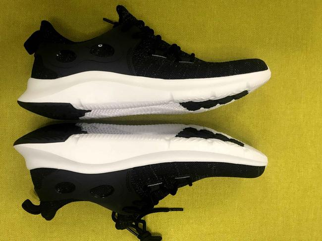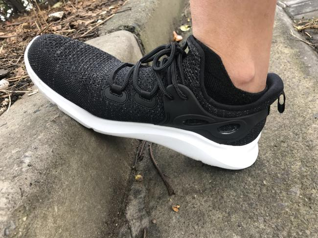 先来看看外观,咕咚智能健步鞋的设计还是十分简约的,第一眼看上去很时尚。健步鞋的鞋面采用一体织的设计,3D鞋面上布满了密密麻麻的出气孔,后跟和侧面加入了一TPU材料,保证了鞋子整体的稳定性,防止脚踝受伤。
