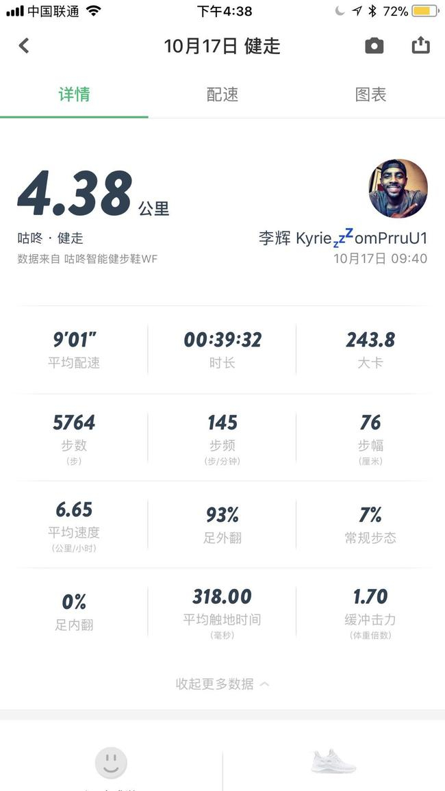 咕咚智能健步鞋穿在脚上的感觉很轻盈,针织网布的质感也较为柔和,没有磨脚的现象,完成健走后,可以在咕咚APP内同步本次健走的数据,配速、时常、消耗卡路里、步数等常规数据一览无遗,另外,健步鞋的智能芯片还记录了笔者的步态,因为自己走路有外八字的毛病,因此90%的时候脚都是外翻的,可以说,这样的记录功能还是相当强大的。