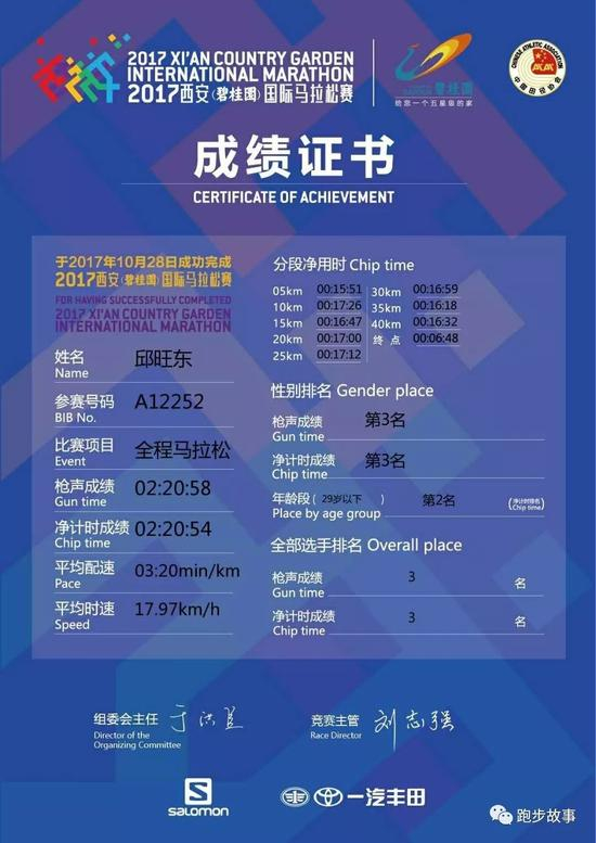 西安马拉松他的唯一遗憾是没有跑进2:20,达级运动健将。