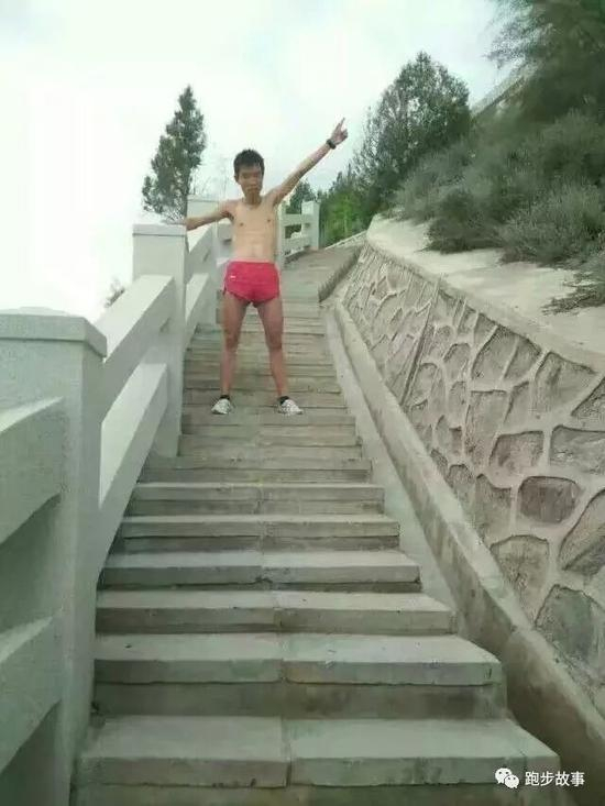 他平时每天慢跑20公里,一天两练: