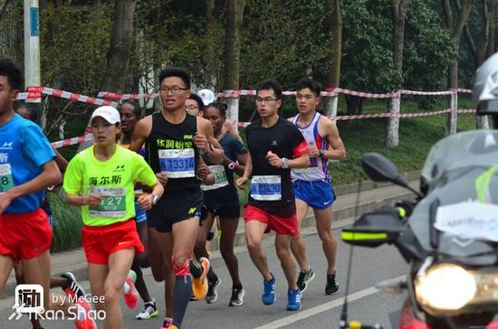 上午7时比赛发枪,跟上男子第一集团的中国选手只有李少壮和杨定宏两人(分别只跟到两公里多和6公里不到),李鹏等一众业余男子高手则跟着女子第一集团。