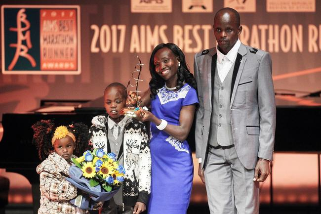 此次国际马拉松和公路跑协会(AIMS)年度颁奖典礼在雅典举行,基普乔格获得了2017全球马拉松最佳男选手,凯特尼获得了2017全球马拉松最佳女选手,葡萄牙老将罗莎·莫塔(Rosa Mota)则获得终身成就奖。