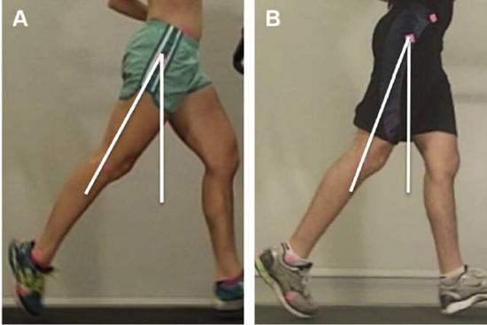 如果髋前部和大腿前侧肌肉都紧张,那么就会出现如下图所示情况,膝关节高于髋关节,小腿无法与地面垂直,有这种表现的跑友,要注意了,非常容易发生跑伤。