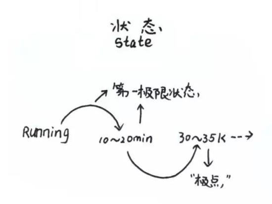 在长距离跑步过程中,跑友可能会出现两次“极限”状态,产生乏力、头晕、胸闷、气喘等不适症状,第一次约在跑步开始10~20min时,第二次在30~35km时。