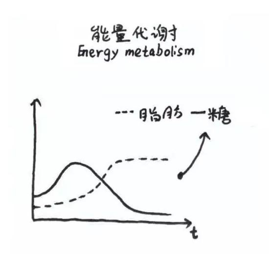 人体开始运动后,体内脂肪、糖类代谢逐渐加剧。在运动初期,人体动能主要来源于体内多余的糖类代谢分解;而在一定时间后,脂肪代谢开始逐渐占据主导地位,这也是人体开始大量燃脂的标志。