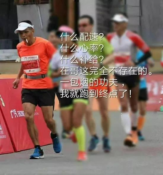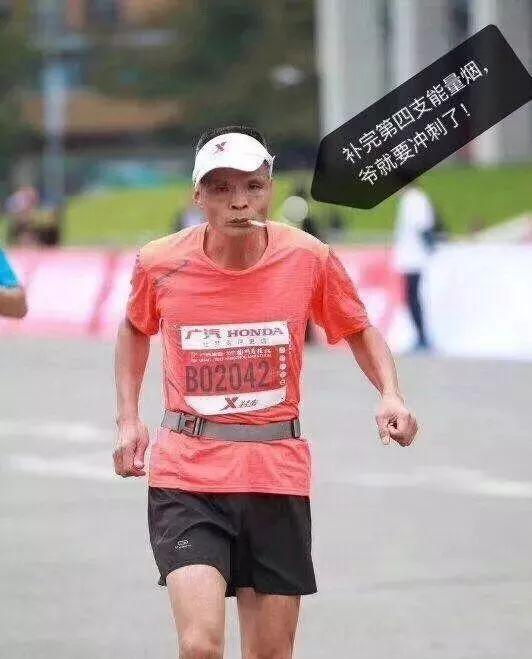 鲁迅说过:赛后一根烟,赛过活神仙!今年的杭州马拉松赛中,一位跑者在赛道中就抽起了烟,边跑边抽,毫不掉速,最终330跑完了全程,不少人惊叹:原来香烟才是马拉松最强补给啊!