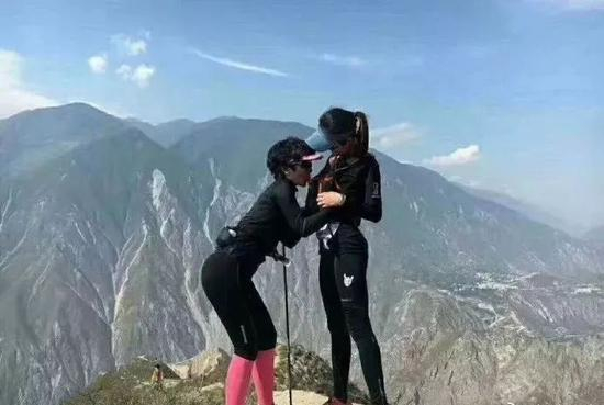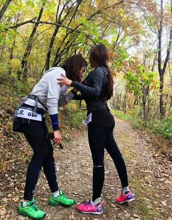 她们在干嘛?她们在越野啊!低头的女跑者再干嘛?她在补给啊!