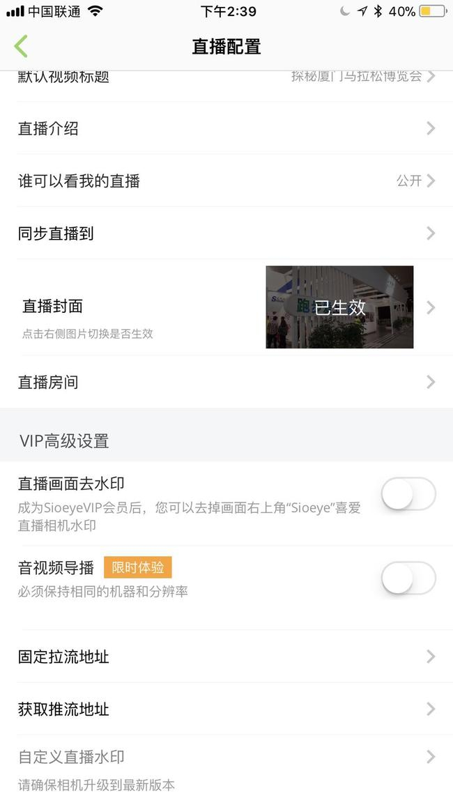 设置好这些功能后,在机器选择直播界面,在设置中还能够设定直播的参数,然后按一下机器上方的按钮,直播就会马上开始,这时候你就能通过手机APP实时查看直播画面,并且还能够一键分享给好友。此外,它还有一键推流功能,可将直播内容一键推流至Sioeye独家直播控制平台或者YY、斗鱼、花椒、映客等各大主流直播平台,十分方便。