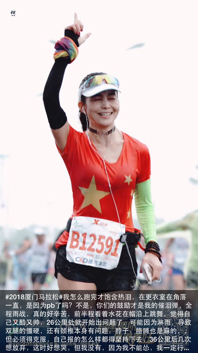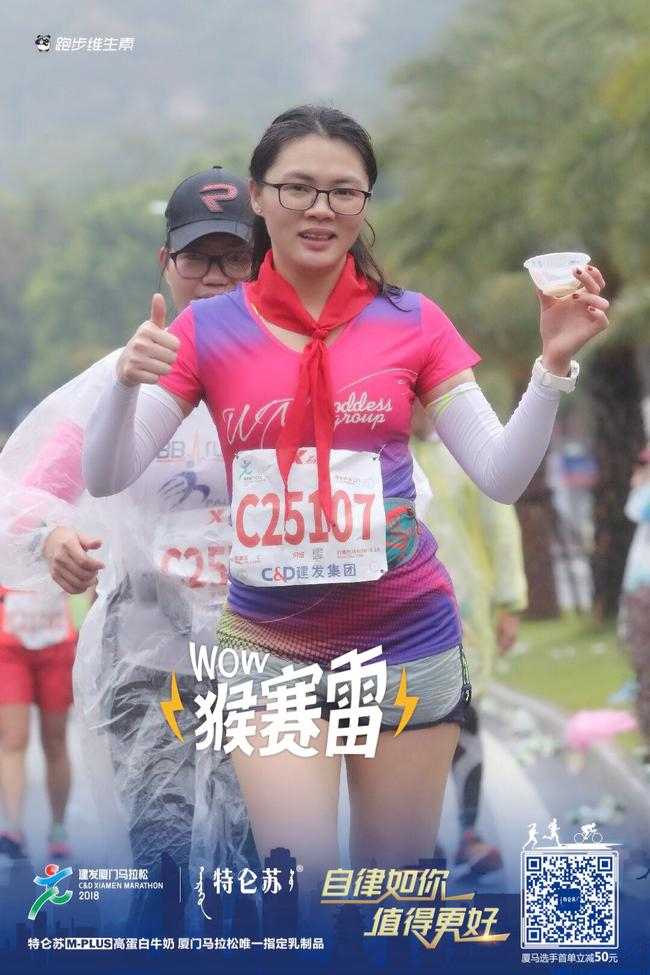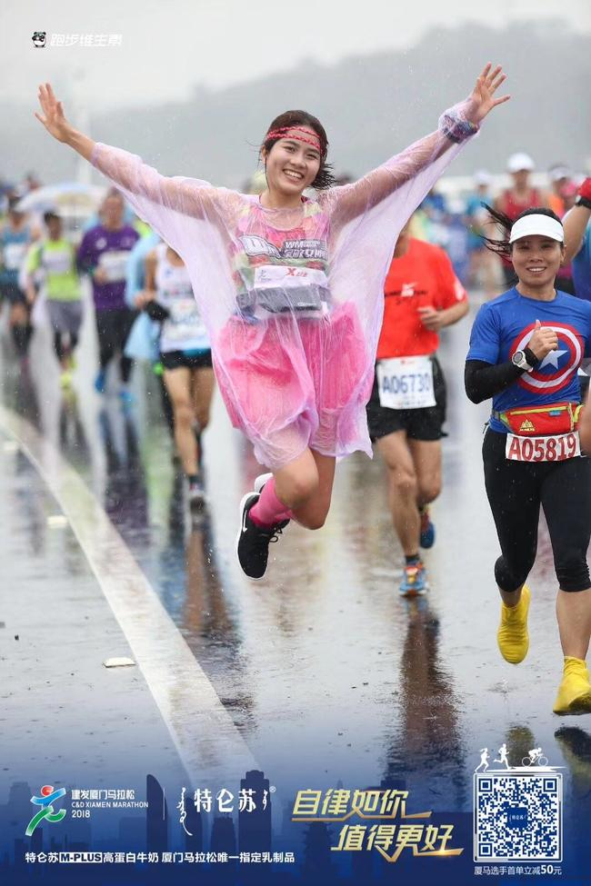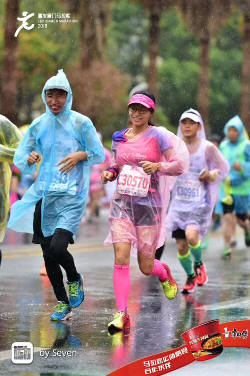 而且据说妹子还有非常温馨的跑马故事,她老公不仅支持她追求爱好,厦马当天还前来助阵,帮她拍美照,真是羡慕啊,冷冷的冰雨中又撒了一把狗粮