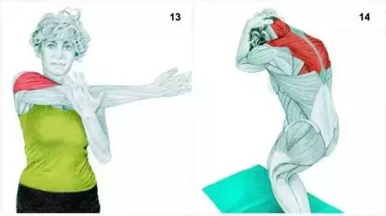 下面是全身拉伸详细图解,图中的拉伸部位已经被红色标出,超级实用。